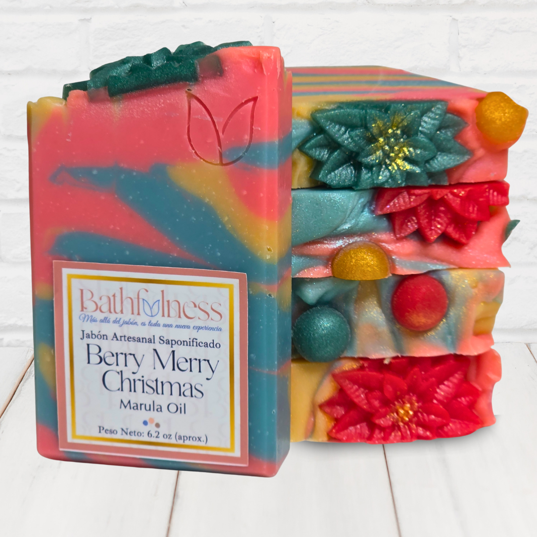 Un jabón que celebra la alegría de la Navidad con su aroma Berry Merry Christmas, una fusión brillante de bayas dulces y notas festivas que evocan el espíritu alegre de la temporada. Enriquecido con aceite de marula, nutre y suaviza la piel dejando una sensación sedosa y un perfume encantador que invita a disfrutar cada baño como un regalo navideño. ✨🎄