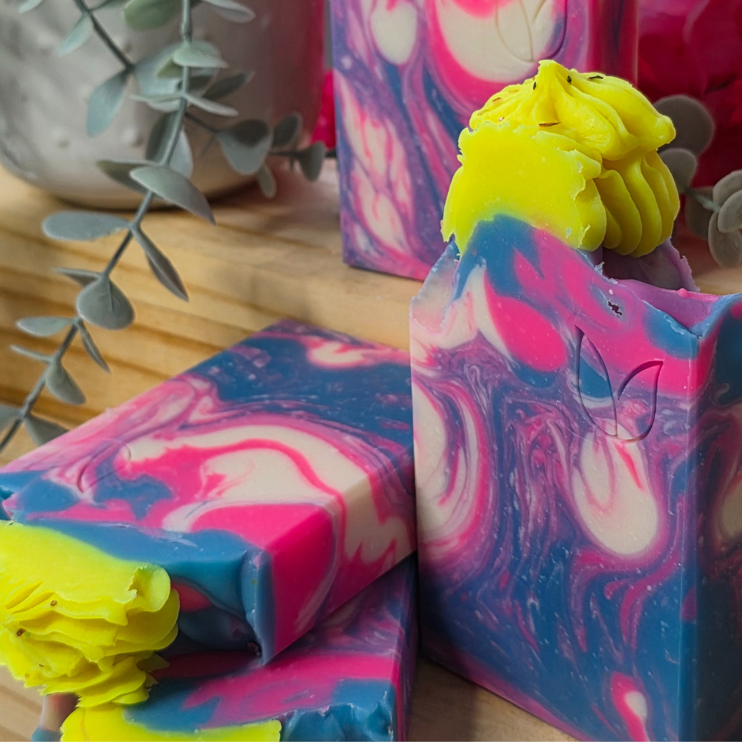 Nuestro jabón artesanal hidratante, elaborado con aceites de canola y cártamo, es ideal para personas con piel seca, ya que ayuda a nutrir y suavizar en cada uso. Su delicado aroma Hawaiian Pink Hibiscus aporta una frescura suave y envolvente que evoca un paraíso tropical, mientras sus colores vibrantes convierten cada barra en una pieza única que transforma la rutina diaria en un momento de energía y bienestar.