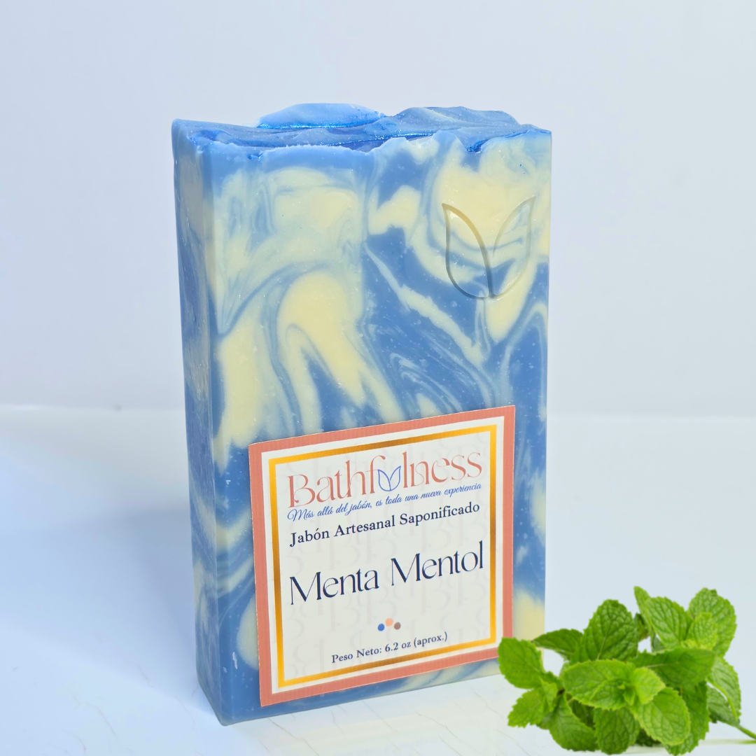 El jabón artesanal de menta con mentol te ofrece una experiencia refrescante que revitaliza tanto tu piel como tus sentidos. Gracias a las propiedades calmantes de la menta, este jabón alivia la piel irritada, mientras que el mentol, con su toque refrescante, estimula y renueva tu piel durante cada baño. Además, la menta y el mentol cuentan con poderosas propiedades antibacterianas, ayudando a combatir bacterias y prevenir problemas cutáneos, mientras tonifican y dejan la piel suave y vigorosa.