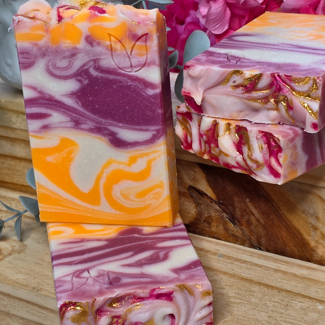 El jabón artesanal de mango combina la manteca de semilla y el puré de mango para brindar hidratación y suavidad, ayudando a mantener la piel nutrida y con una textura suave y saludable. Su fragancia jugosa, con notas de mango y frutas tropicales es delicioso. Este jabón, en todo aspecto, será un plaser para tus sentidos y convertirá la rutina de higiene diaria en un momento refrescante y lleno de energía.